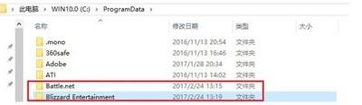 第六步:打开C盘,进入ProgramData,删除Battle.net和Blizzard Entertainment文件夹,再进入本来安装战网的目次删除Battle.net文件夹。重启电脑安装即可