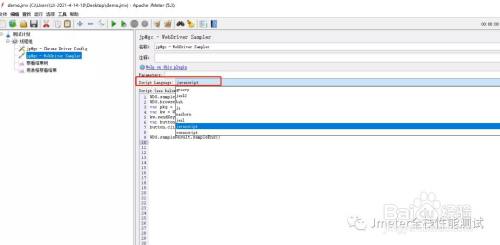 添加当作功之后,进入到取样器编纂页面中,在Script Language中选择您所用的剧本说话(我们这里选择javascript)