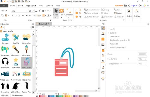 3、找到记者证,用鼠标将它拖放到编纂区中;