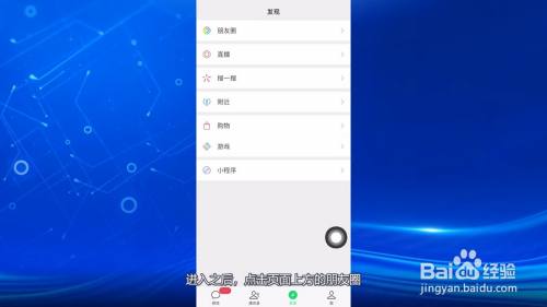 打开进入微信发现页面,进入之后,点击页面上方的朋友圈。