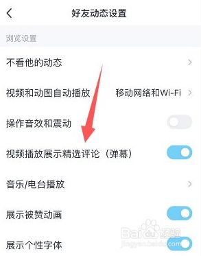 打开后在页面上方找到视频播放展示精选评论(弹幕),点击开启开关