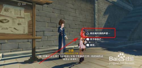 与细雨对话,在弹出的对话框中,选择【我在璃月港的声望】。
