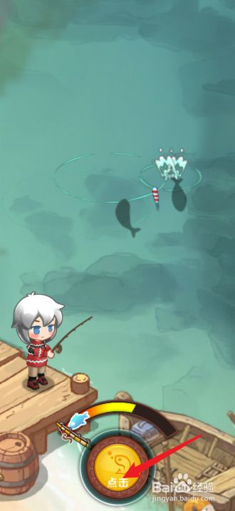 当鱼呈现进度条上时,点击【垂钓】按钮。