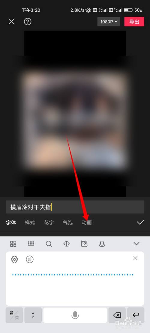 输入字幕文字,点击动画的选项。