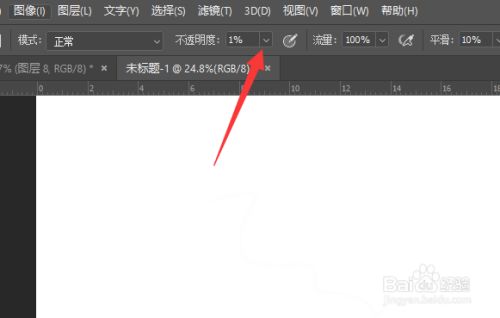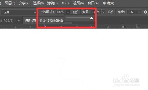ps中画笔不透明度被调得很是小,就会画不出来,选择画笔东西后,点击上方不透明度设置的下拉三角标。