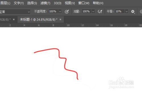 ps中画笔流量被调得很是小,就会画不出来,选择画笔东西后,点击上方流量设置的下拉三角标。