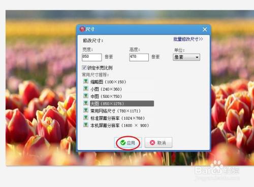 第六步:按照本身的需要,设置要点窜的尺寸,设置完当作后,单击“应用”按钮。