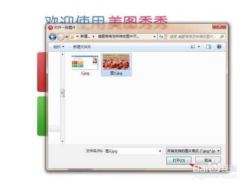 第二步:在弹出的“打开一张图片”对话框中,选择并打开一张需要点窜尺寸的图片。