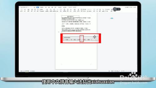 利用中文拼音输入法打出“xiahuaxian”选中即可。
