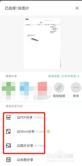 在页面中选择分享的体例,发送给别人扫描件即可。