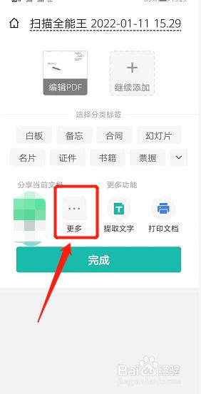 扫描文件处置完当作,点击分享下的更多。