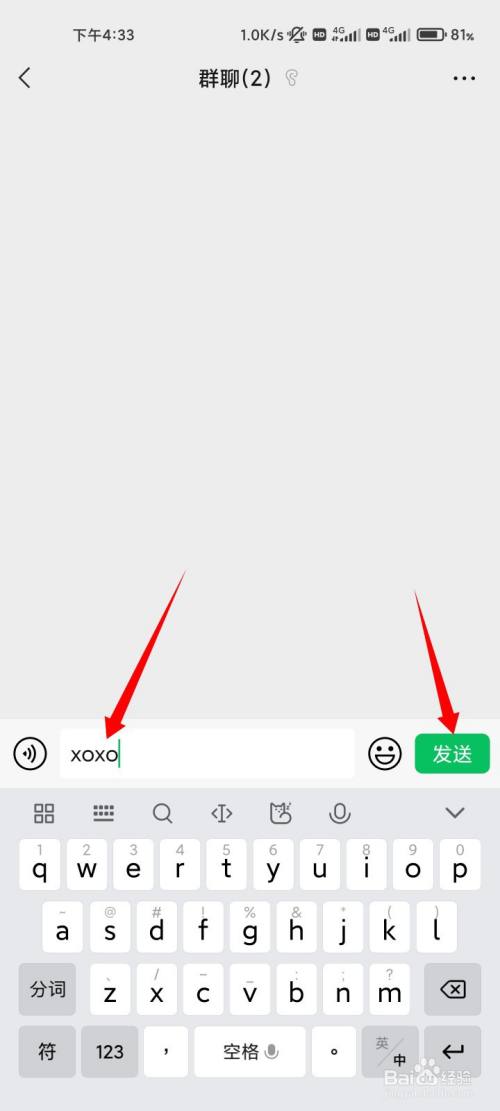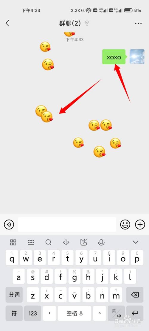 在动静框中输入xoxo的指令,点击发送的选项。