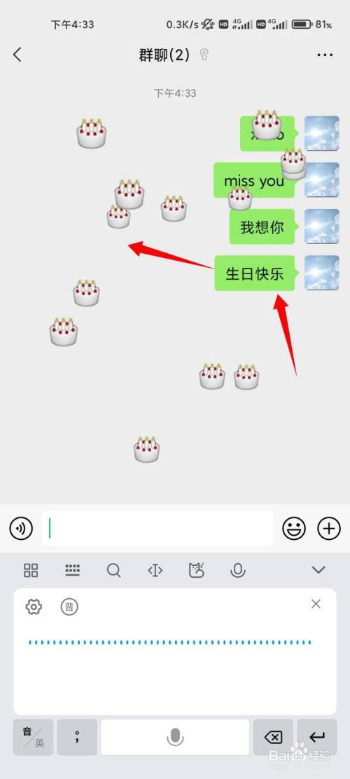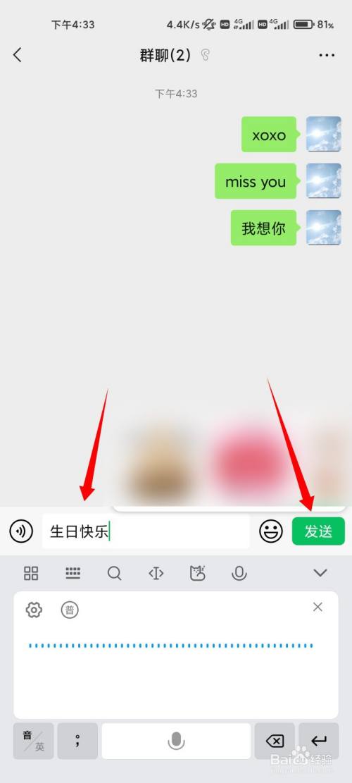 在动静框中输入生日欢愉指令,点击发送的选项。