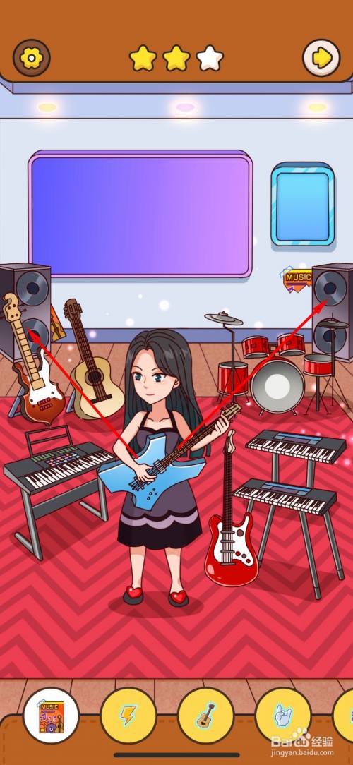 4样乐器依次点击后,墙上的吉他标记就点亮了,点击吉他即可获得第二件物品。