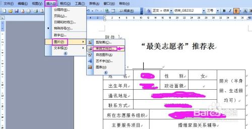 选择插入菜单,找到图片,选择来自文件;