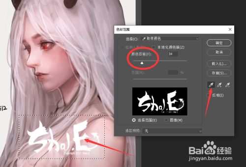 在此,我们操纵选区东西选择响应的文字水印后,操纵颜色规模选项拔取颜色。