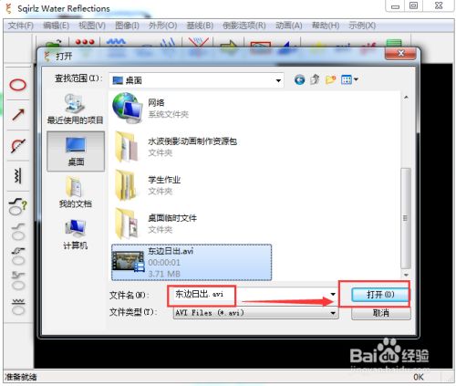 选中适才建造并保留的东边日出avi动画,然后按打开;
