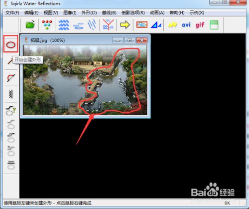 先点起头建立外形按钮,将右边的水面区域选中绘拟定义好选区;