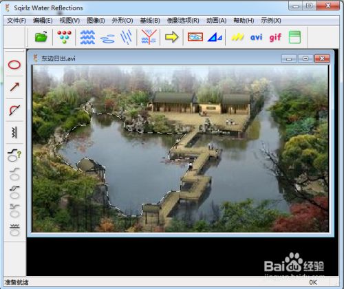选择只有根基波纹,然后按确定,给右边的水面加上波光鳞鳞的动画结果,代表日出好天时的水波倒影动画;