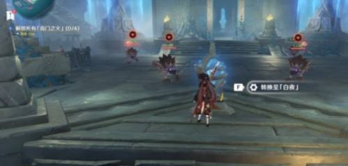 起头战斗。将广场上的四个火炬点燃:第一波:四只嗜雷·兽境幼兽;第二波:一个雷深渊法师、一个冰深渊法师、一个水深渊法师;第三波:一只深海龙蜥·原种、一只深海龙蜥·啮冰;第四波:深渊使徒·急流。