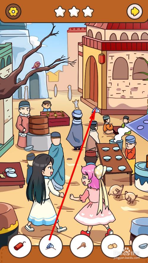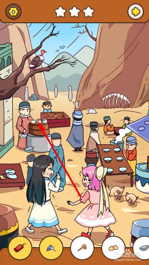点击地上的包子,即可获得第四件物品。