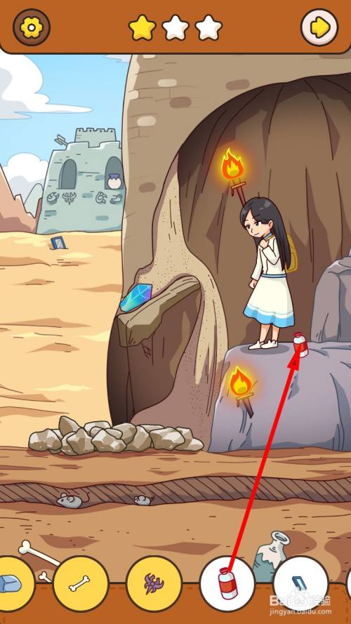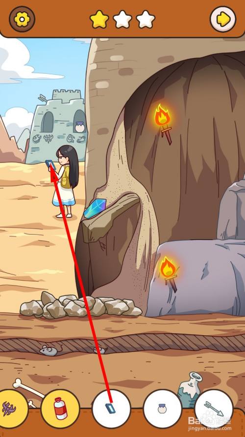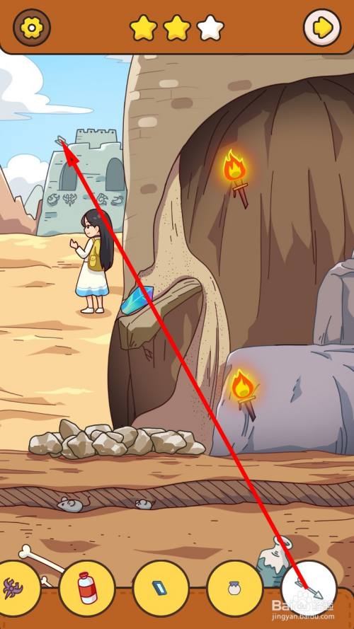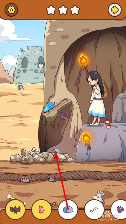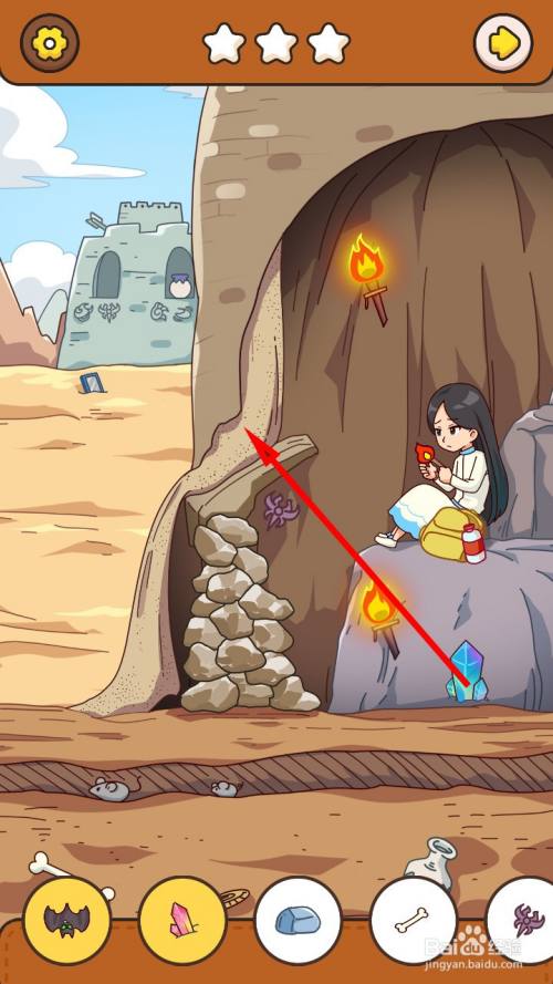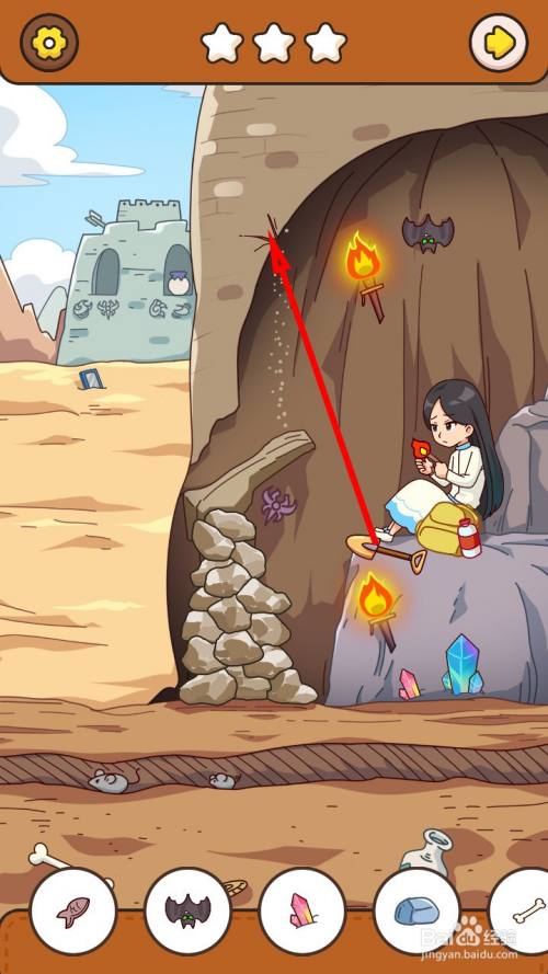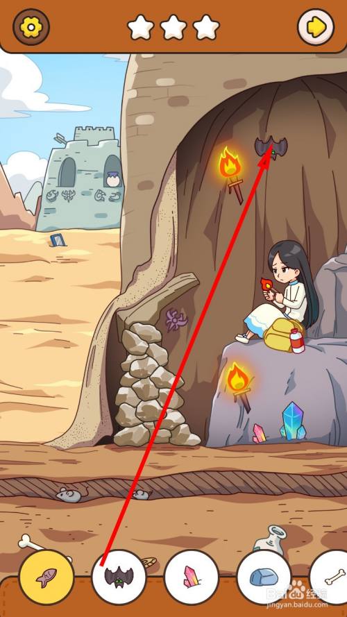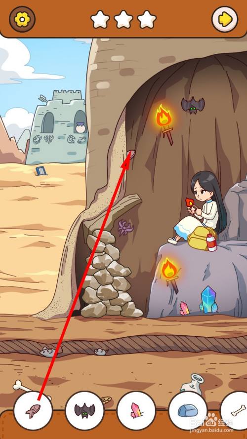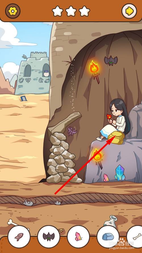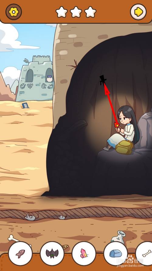 点击山洞上面的蝙蝠,即可获得第二件物品。