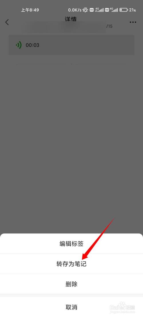 在底部弹出的菜单中,点击转存为笔记的选项。