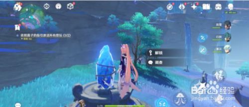 在祭坛处利用「水」或「风」元素清理青苔,祭坛就会呈现【解锁】;若是清理青苔今后没有呈现【解锁】,那么尝尝接近祭坛,站在祭坛上会显示【解锁】。