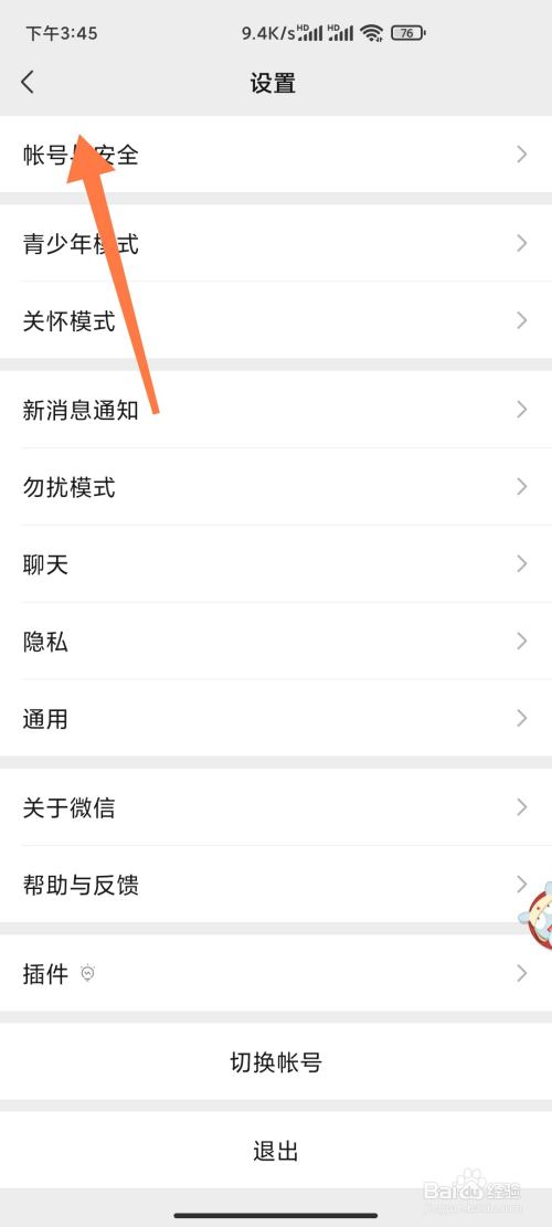 点击账户与平安。