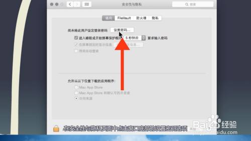 在平安性与隐私页面中点击窗口底部的设置密码选项。