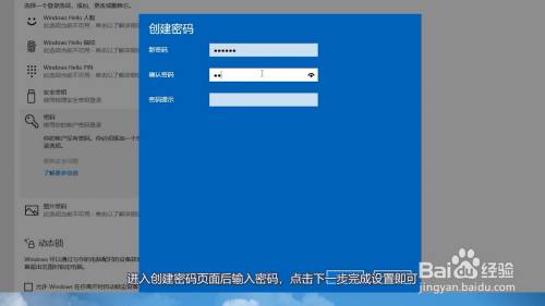 进入建立密码页面后输入密码,点击下一步完当作设置即可。