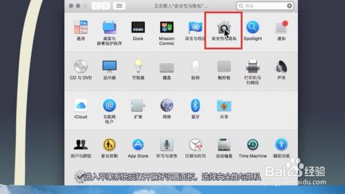 进入苹果系统后打开偏好设置面板,选择平安性与隐私。