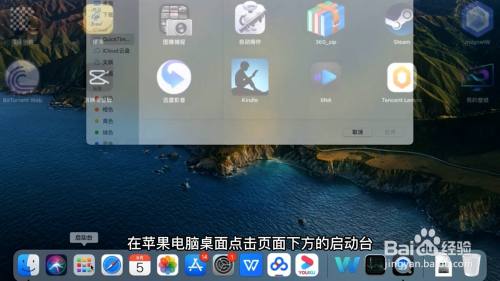 在苹果电脑桌面点击页面下方的启动台,再点击我的壁纸。