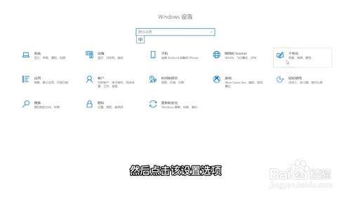 进入windows设置找到个性化设置,然后点击该设置选项。
