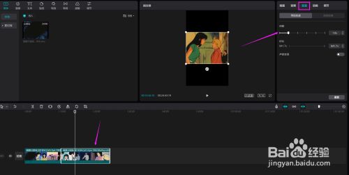 添加音频,选择合适的音乐素材添加到轨道中与视频素材同步