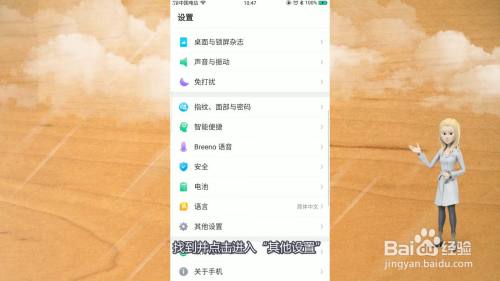 进入OPPO手机设置界面后,找到并点击进入“其他设置”。