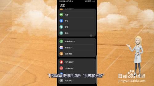 进入华为手机设置界面后,下滑屏幕找到并点击“系统和更新”。