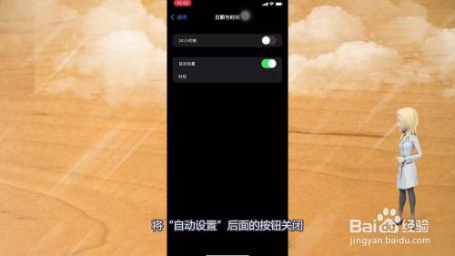 在日期与时候界面中,将“主动设置”后面的按钮封闭。