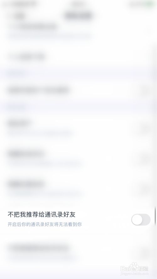 隐私设置界面点击“不把我保举给通信录老友”后面的圆点