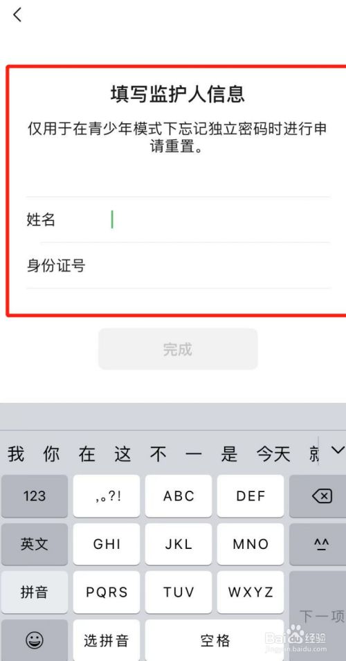第五步,我们鄙人图所示位置输入监护人的姓名及身份证号就可以添加监护人了。