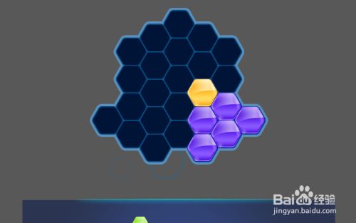接着放上黄色拼块,放在紫色拼块的左上侧挨着,如图。