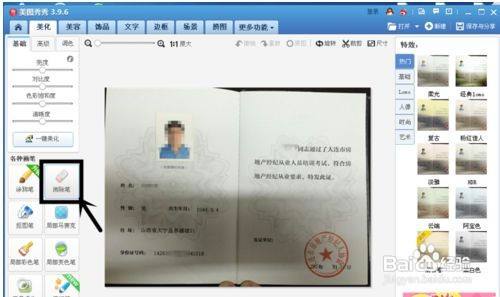 把图片点开后找到本身要点窜的文字,点击消弭笔抹去文件上本身要点窜的文字