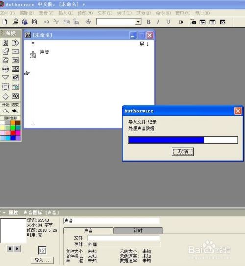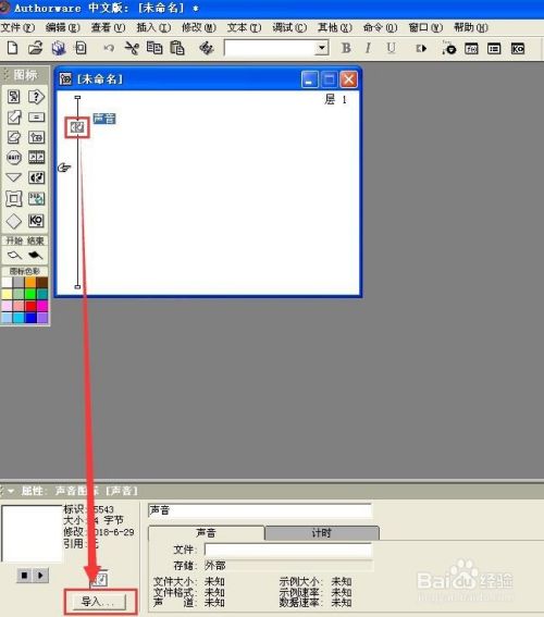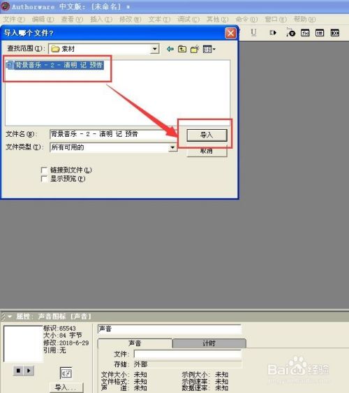 双击声音图标,在打开的声音属性菜单中点导入;