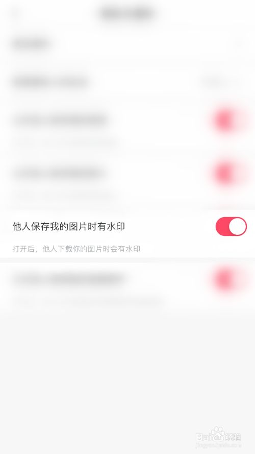 “他人保留我的图片时有水印”后面的圆点变为灰色即暗示美图秀秀封闭他人保留我的图片时有水印当作功
