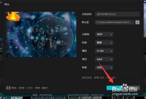 按以上操作设置完当作后,我们就可以将视频导出保留了。