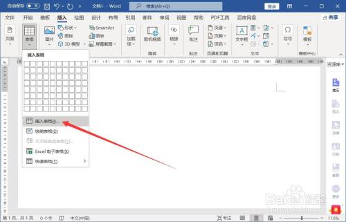 点击菜单栏【插入】-【表格】,选择表格行列数。
