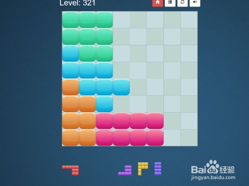 最后放上紫色方块外形,放在黄色方块外形的左侧挨着,如图,这样就过关了。
