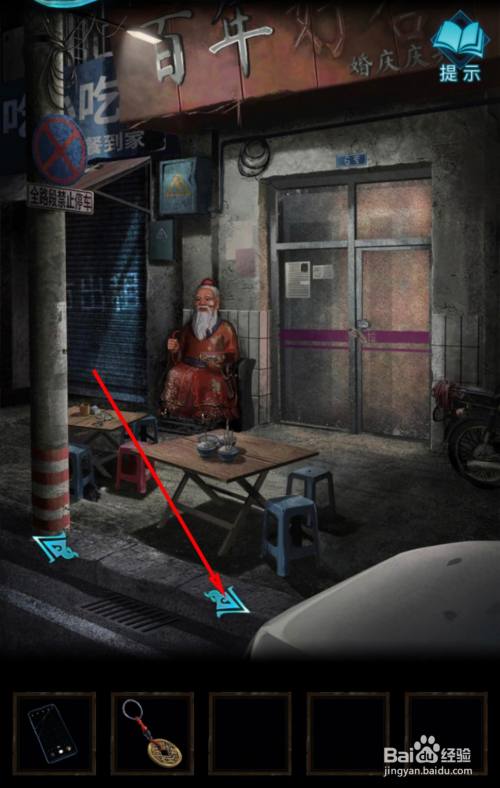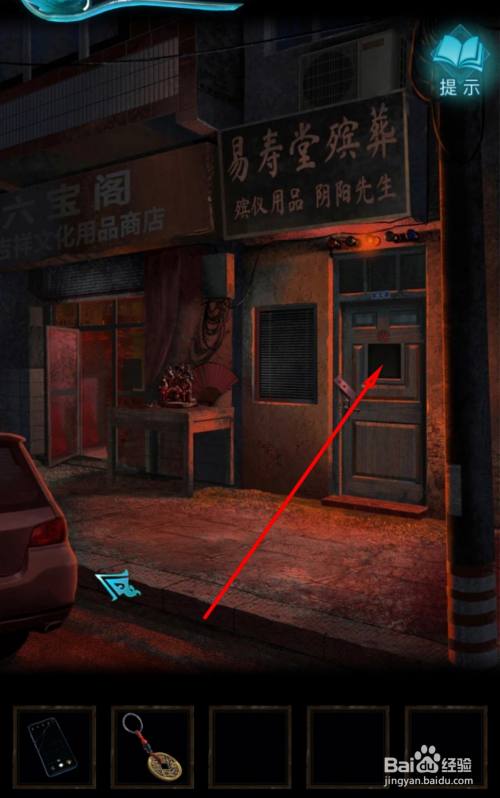 婚庆店门口点击下面标的目的右的蓝色箭头去往右边场景。