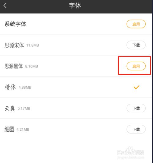 打开如下图界面,可以看到本身选择的字体已经下载完当作而且启用了。