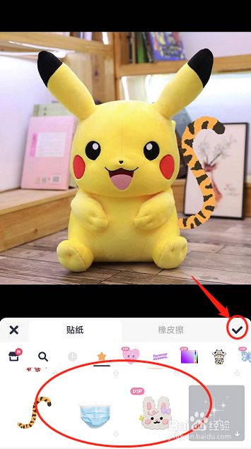 在搜刮成果中点击合适的山君小从头至尾巴结果,拖动结果调整在照片中的位置后,点击“√”确定。